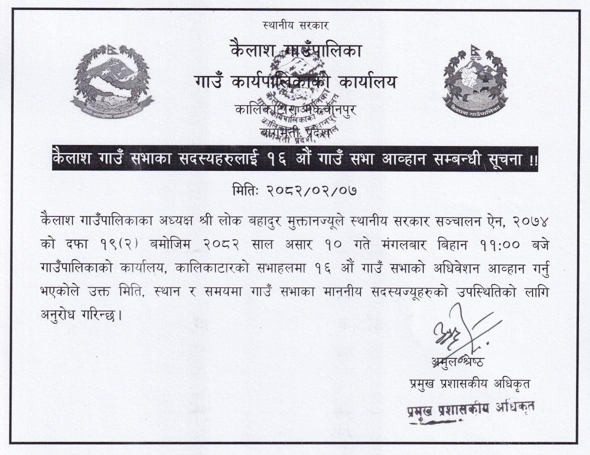 » १६ औं गाउँसभा आव्हान सम्बन्धी सूचना ! !