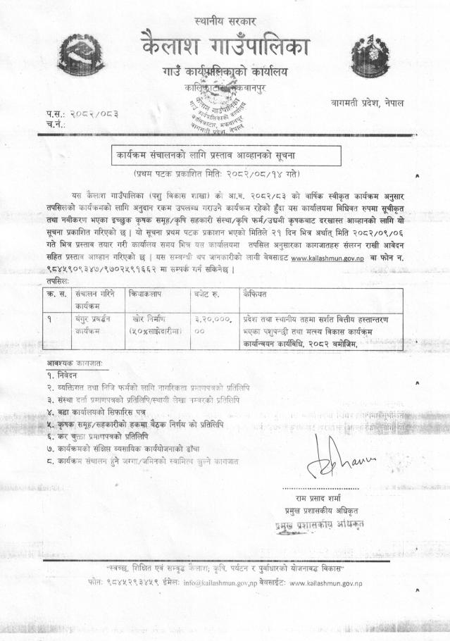 » बंगुर प्रबर्द्धन कार्यक्रम संचालनको लागि प्रस्ताव आव्हानको सूचना ! !