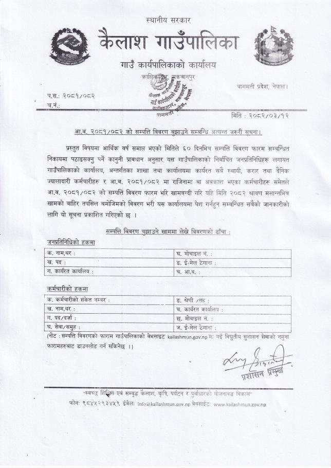 आ.व. २०८१/०८२ को सम्पत्ति विवरण बुझाउने सम्बन्धी अत्यन्त जरुरी सूचना ! !