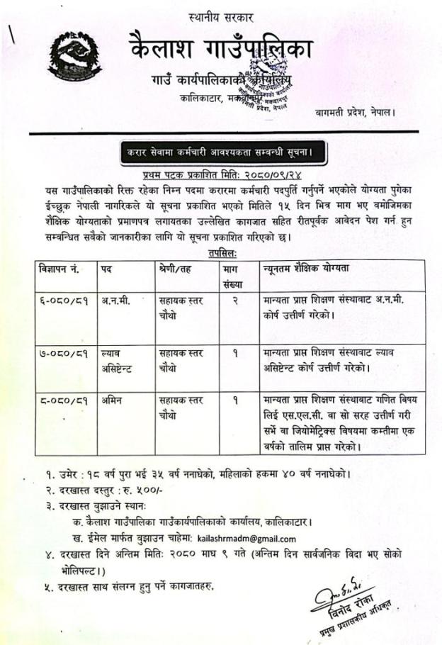 करार सेवाको लागि दरखास्त आव्हान गरिएको सूचना ! !