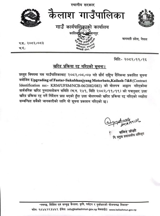 » खरिद प्रकृया रद्द गरिएको सूचना !