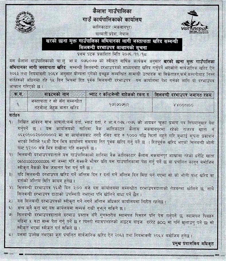 » जस्तापाता खरिद सम्बन्धी सिलबन्दी दरभाउपत्र आव्हानको सूचना ! !