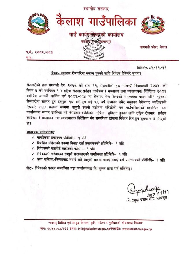 न्यूनतम रोजगारिमा संलग्न हुनको लागि निवेदन दिने बारे सूचना !