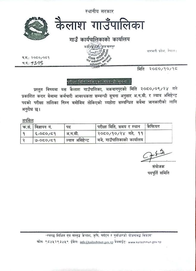 कैलाश गाउँपालिका स्तरीय परीक्षा समितिका पदाधिकारीको नामावली