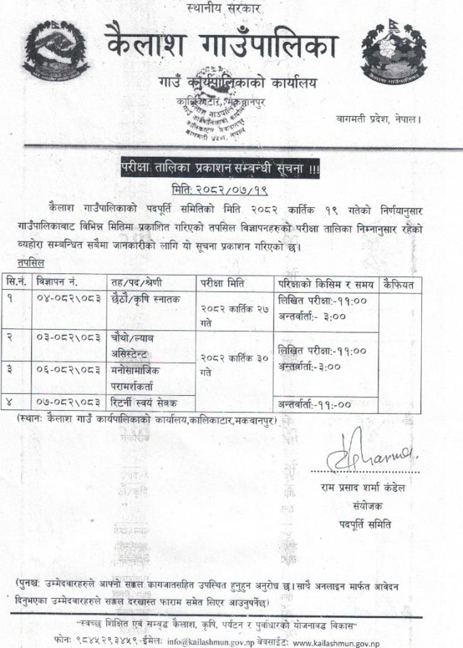 परीक्षा तालिका प्रकाशन सम्बन्धी सूचना ! !