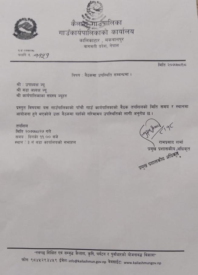 २०७६/०६/१२ गाउँकार्यपालिका बैठक बारे सूचना !!!