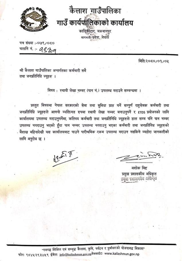 कैलाश गाउँपालिका स्तरीय परीक्षा समितिका पदाधिकारीको नामावली