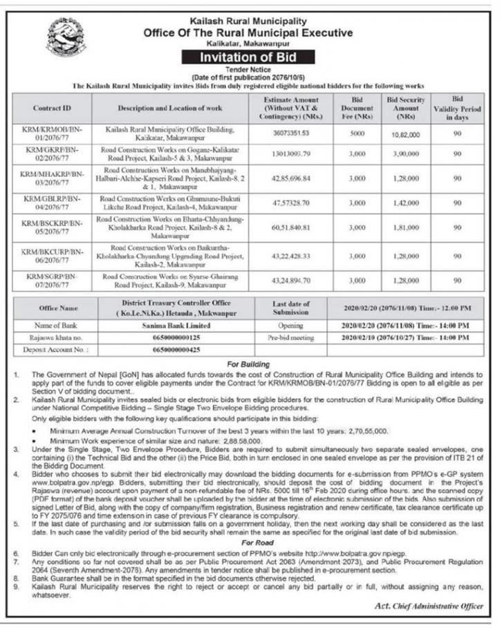 » बोलपत्र आवहान सम्बन्धि सूचना ! !