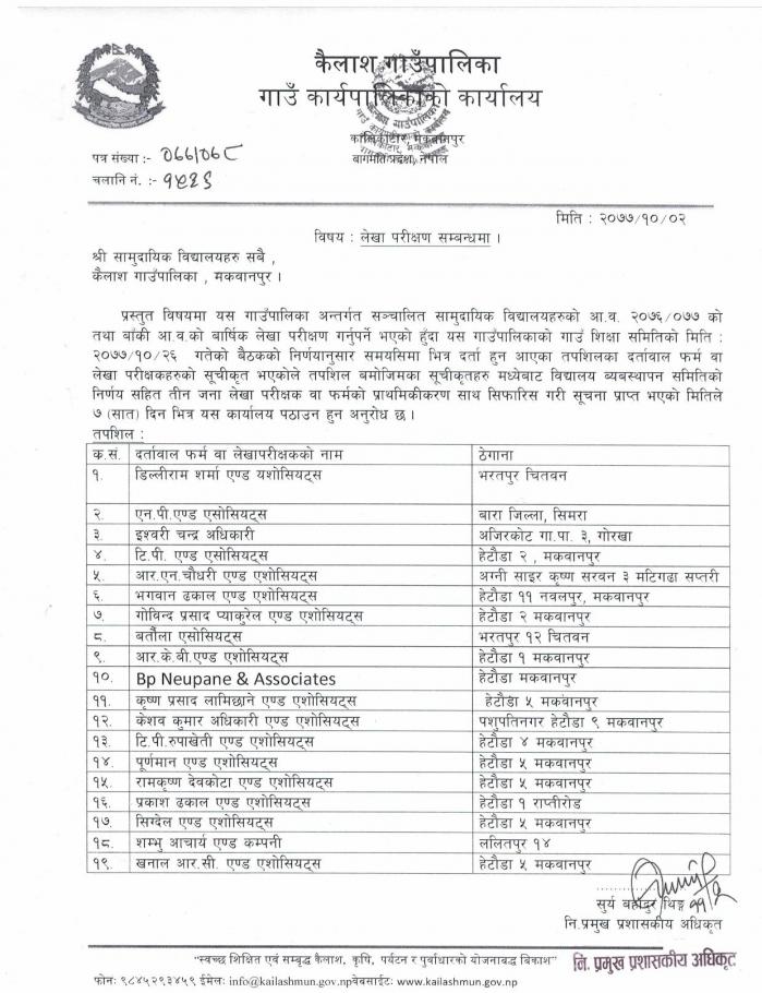 लेखापरीक्षकको फर्म/ नामावली पेश गर्ने सम्बन्धमा