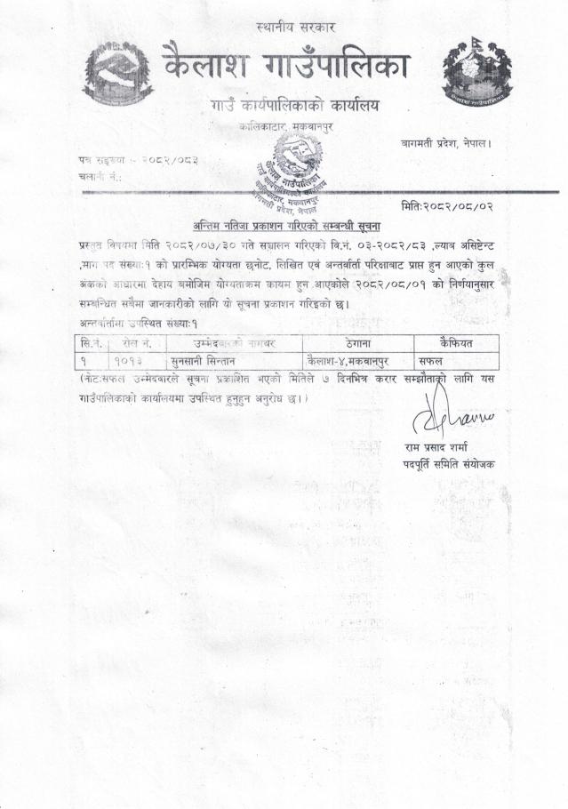 अन्तिम नतिजा प्रकाशन सम्बन्धमा।