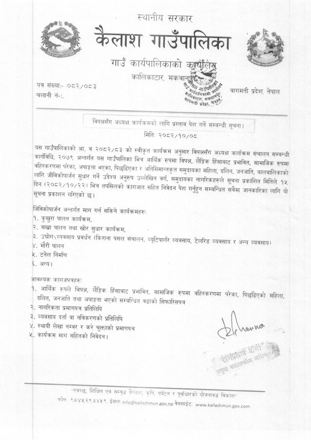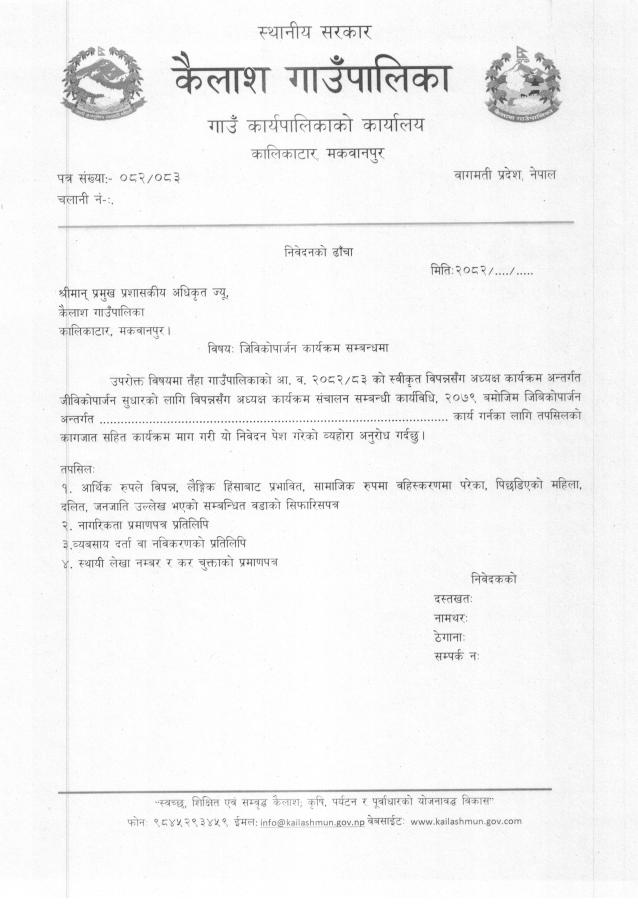 व्यवसाय व्यवस्थापन सम्बन्धी सहयोगका लागि आवेदन आव्हान ! ! !