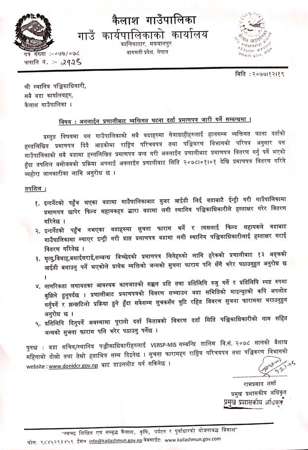 द्वन्द्व प्रभावित परिवारलाई सहायता गर्ने कार्यक्रम सम्बन्धी सूचना !!!