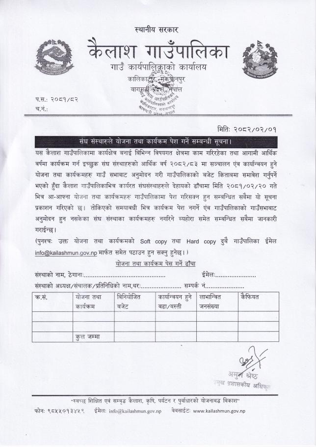 संघ संस्थाहरुले योजना तथा कार्यक्रम पेश गर्ने सम्बन्धी सूचना !
