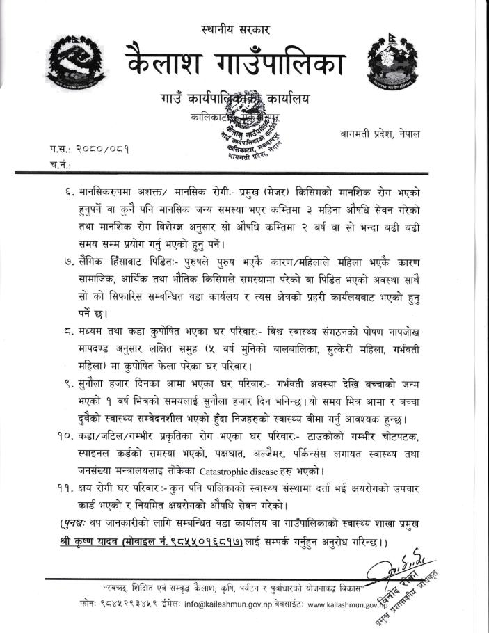 द्वन्द्व प्रभावित परिवारलाई सहायता गर्ने कार्यक्रम सम्बन्धी सूचना !!!