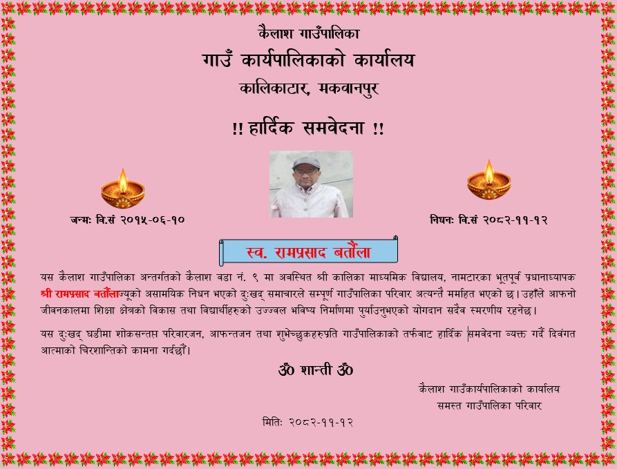 कैलाश गाउँपालिका स्तरीय परीक्षा समितिका पदाधिकारीको नामावली