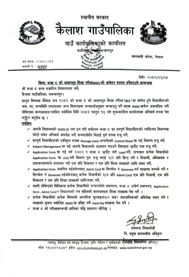 कैलाश गा.पा.को आधारभूत उत्तीर्ण परीक्षा कक्षा ८को परीक्षाफल नतिजा !!!